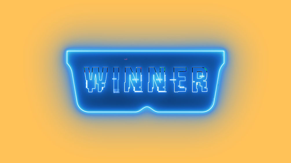 Neon Cyberpunk Futuristic Glasses With Winner Text 4K Stock Animation
